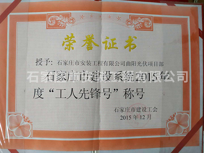 石家莊市建設(shè)系統(tǒng)2015年度“工人先鋒號(hào)”稱(chēng)號(hào)